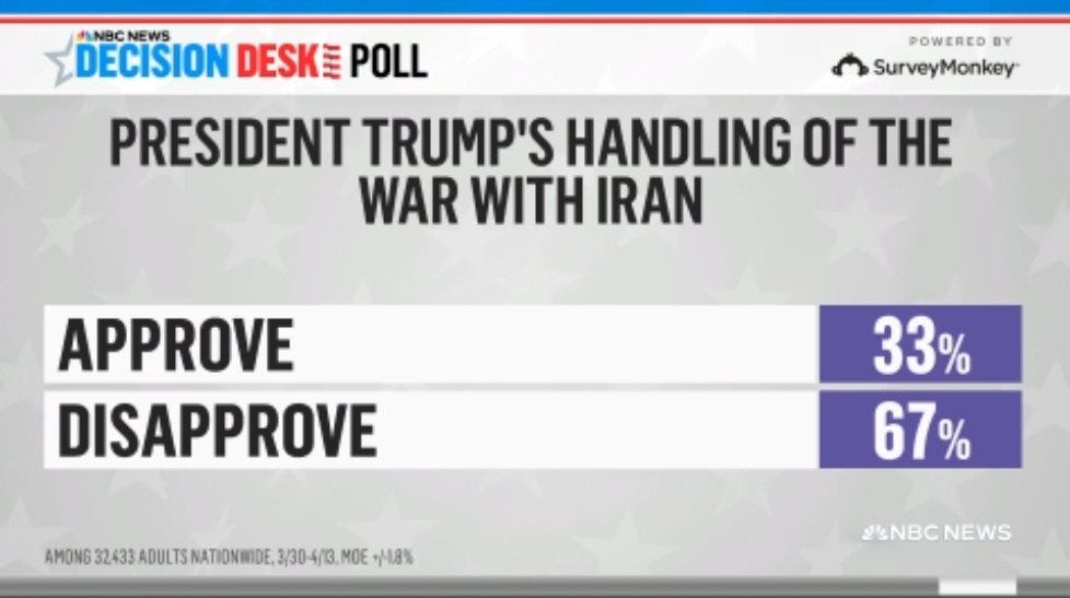 La guerre devient de plus en plus impopulaire. Plus de deux tiers des Américains désapprouvent la gestion du président de cette guerre, selon un sondage commandé par NBC.