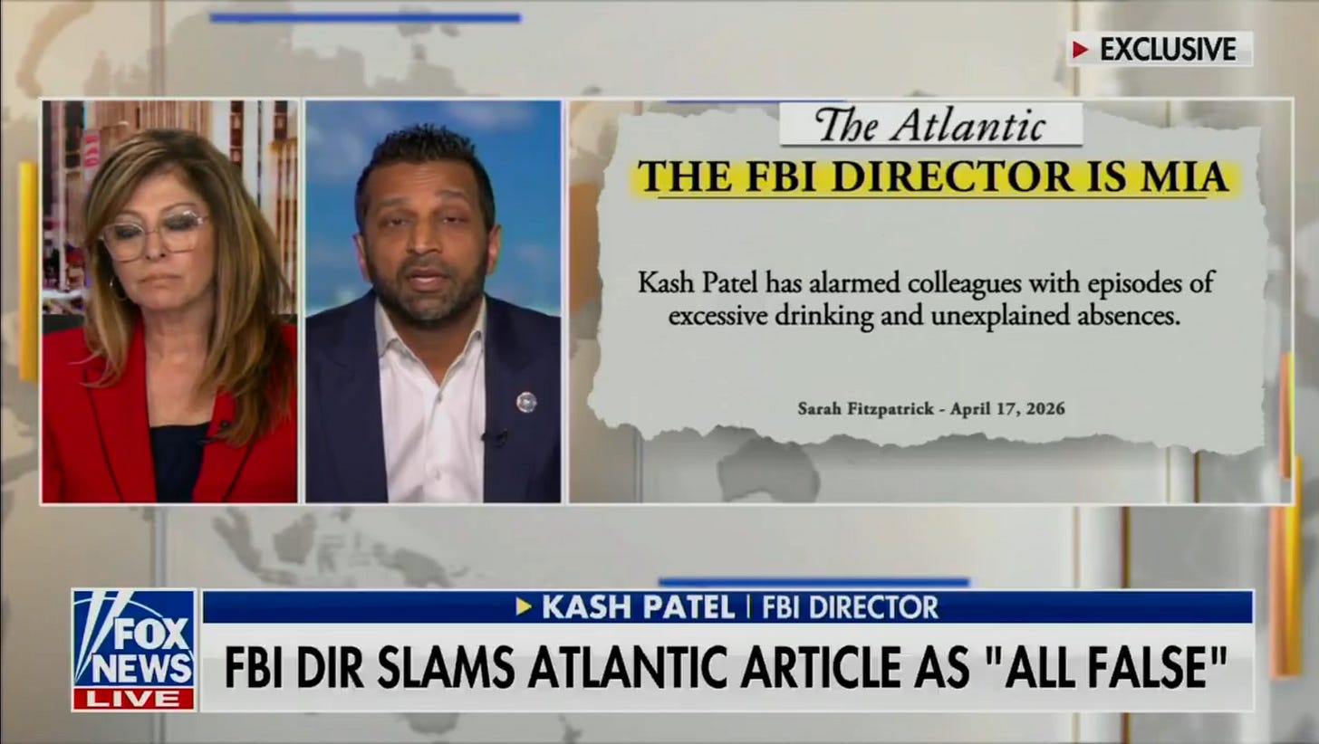 Comme ces révélations sont embarrassantes, et qu’il sait que le président n’aime pas ça, Kash Patel est allé hier matin sur Fox News, dans l’une des émissions que son patron suit avec le plus d’attention, celle de son amie Maria Bartiromo.