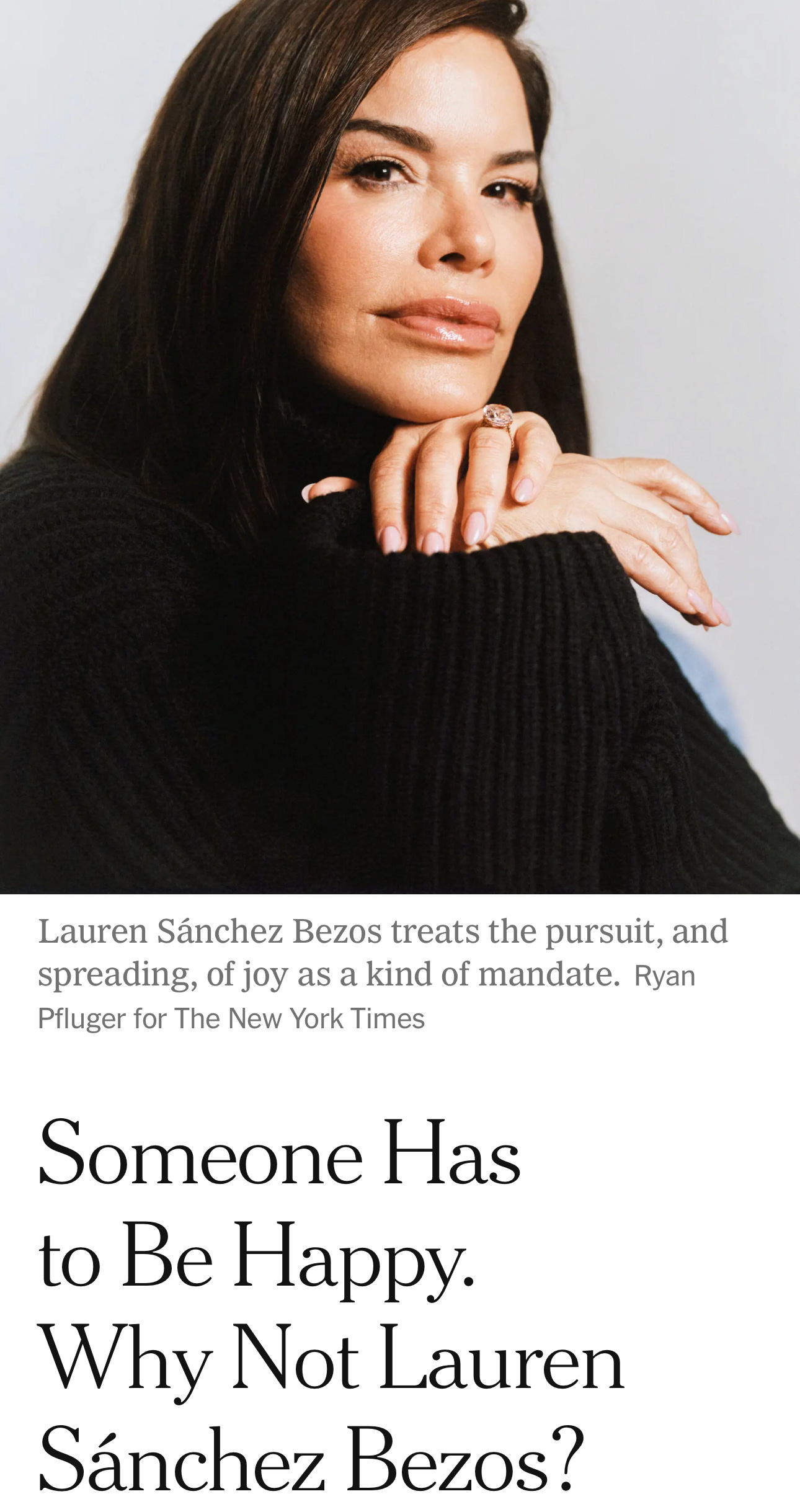Dans un portrait amusant, dont j’ai décidé de faire mon 📚 Food for Thought, Amy Chozick du New York Times raconte comment Lauren Sánchez Bezos, nouvelle épouse de Jeff Bezos, incarne une rupture culturelle.